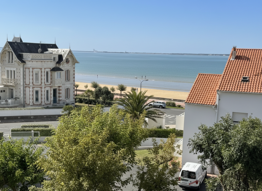 Vaste salon/séjour ouvrant sur terrasse avec aperçu mer,