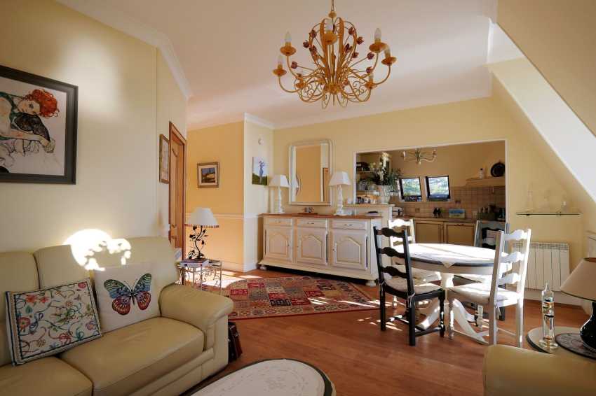 L’architecture extérieure « Rococo » sublime cet étonnant appartement avec vue sur la grande Conche de Royan. Un style unique qui mélange les structures datant de 1890 comme une belle marquise et des dômes en écailles d’ardoise. L’univers change à l’intérieur de ce bel appartement, pour laisser place à la douceur de vivre et au raffinement contemporain. Très beau séjour lumineux, confortable et douillet. La tourelle vitrée apporte une touche d’exception à l’ensemble.