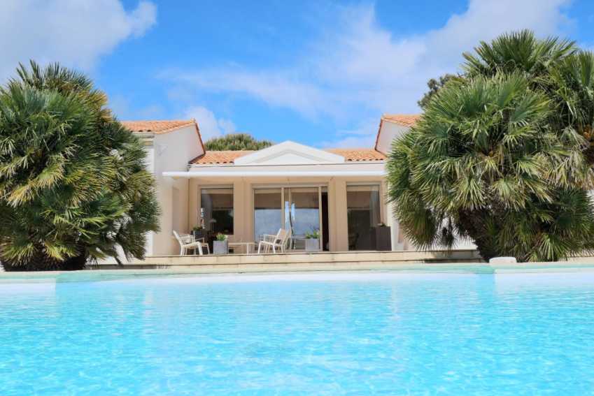 Idéalement située à la croisée des conches les plus plébiscités de notre côte, l’architecture de cette surprenante villa vous transporte immédiatement dans un univers de vacances balnéaires habituellement placées sous des latitudes éloignées.