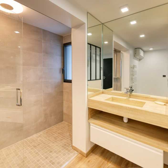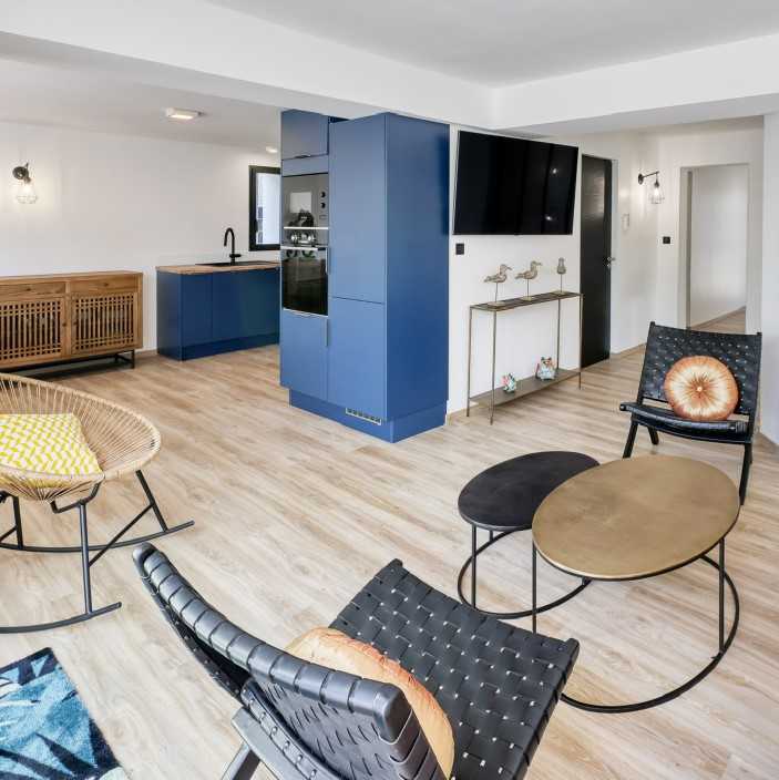 Cette villa au design typique des années heureuses de l’après-guerre, abrite trois appartements entièrement rénovés, pensés pour allier confort moderne et style raffiné. Chaque logement bénéficie d’un aménagement extrêmement soigné, avec des espaces lumineux, une décoration contemporaine, et des équipements de très belles factures.