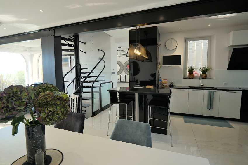 Un cadre de vie tout à fait exceptionnel sans aucun vis-à-vis … L’architecture discrète, et empreinte des dessins stylistiques de notre côte, la qualité de construction, la finition, la parfaite harmonie des volumes, font rappeler à ce lieu, la cabine V.I.P d’un vaste bateau de croisière.