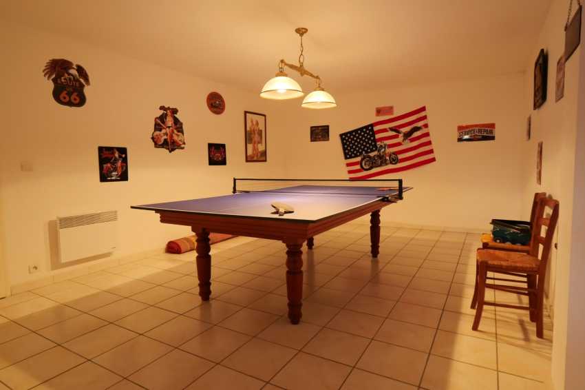 Vaste salle de jeux avec diverses possibilités d’aménagements (salle de billard, tennis de table, salle de sport…) , une chambre attenante,